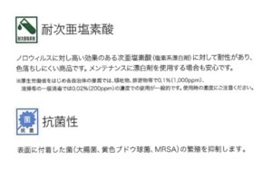 ノロウィルスに対し高い効果のある次亜塩素酸にも耐性があり、色落ちしにくい生地です☘️漂白剤などを使用する場合も安心です。