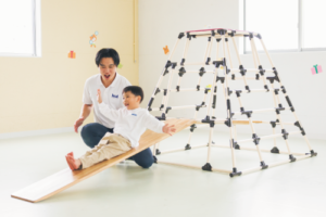 わくわくタワー小型は標準型に比べ、未就学児でもチャレンジしやすい高さに設計しています。一番上まで登った際にも小柄な女性の方でも手が届くことで、見守りや支援がしやすいのが特長です。また、高さへの挑戦を無理なく取り入れながら、スロープやブリッジを組み合わせて遊びの幅を広げられます。